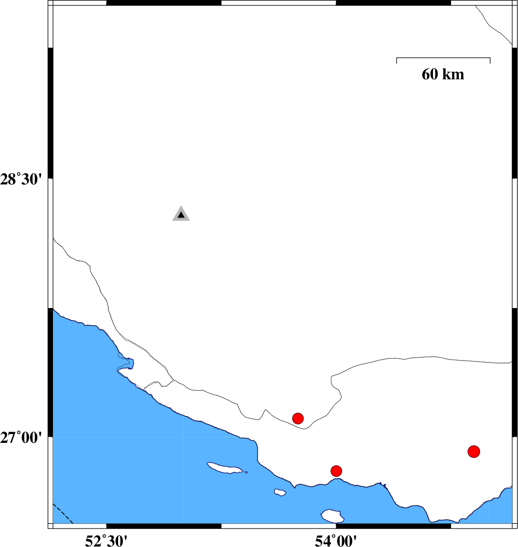 | 2024/07/17 | 03:09:47.1 | 06:39:47.1 | 27.993 | 53.65 | 12 | ML:3.5 | Fars Province, 57 km South of Jahrom | ||