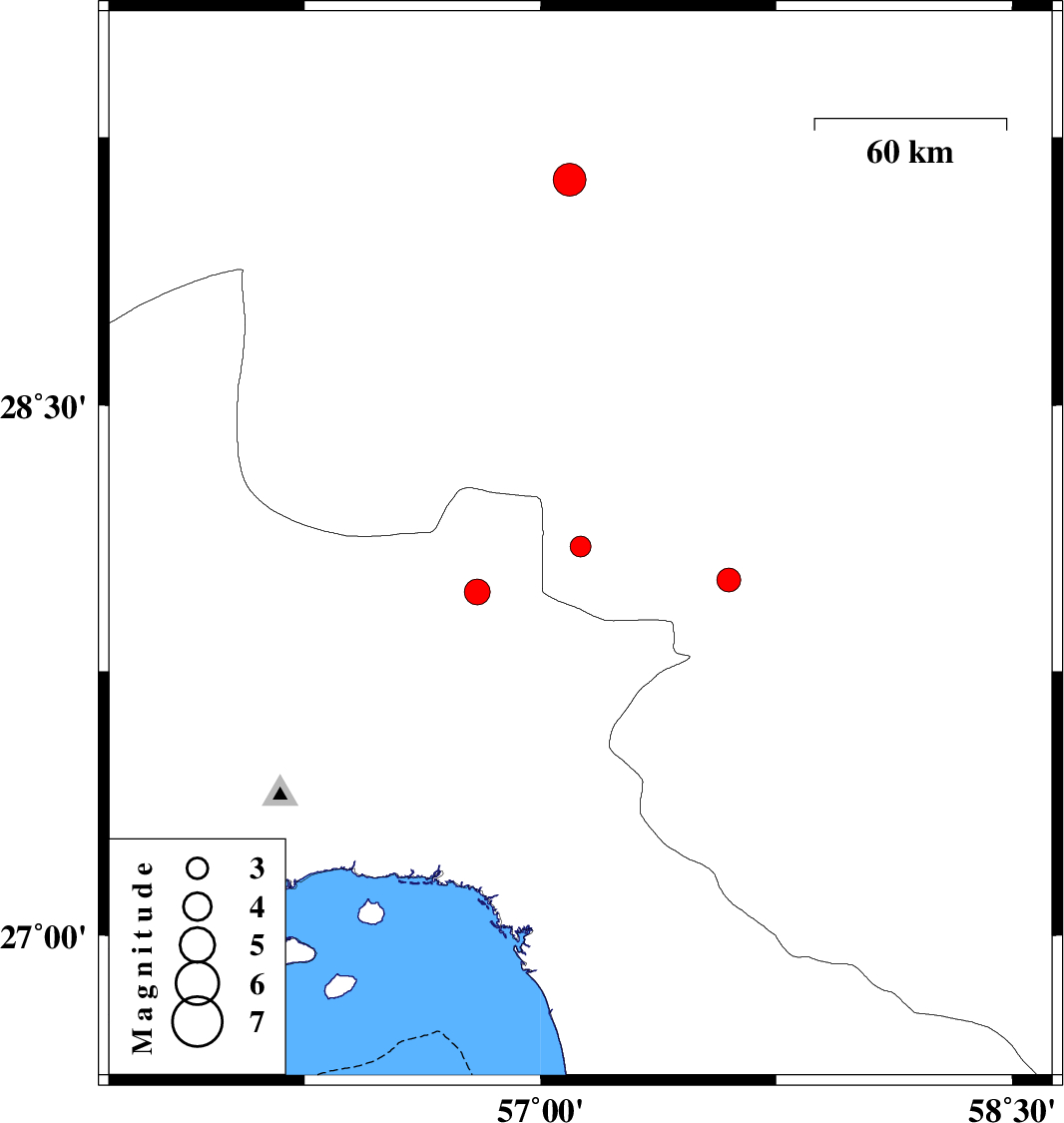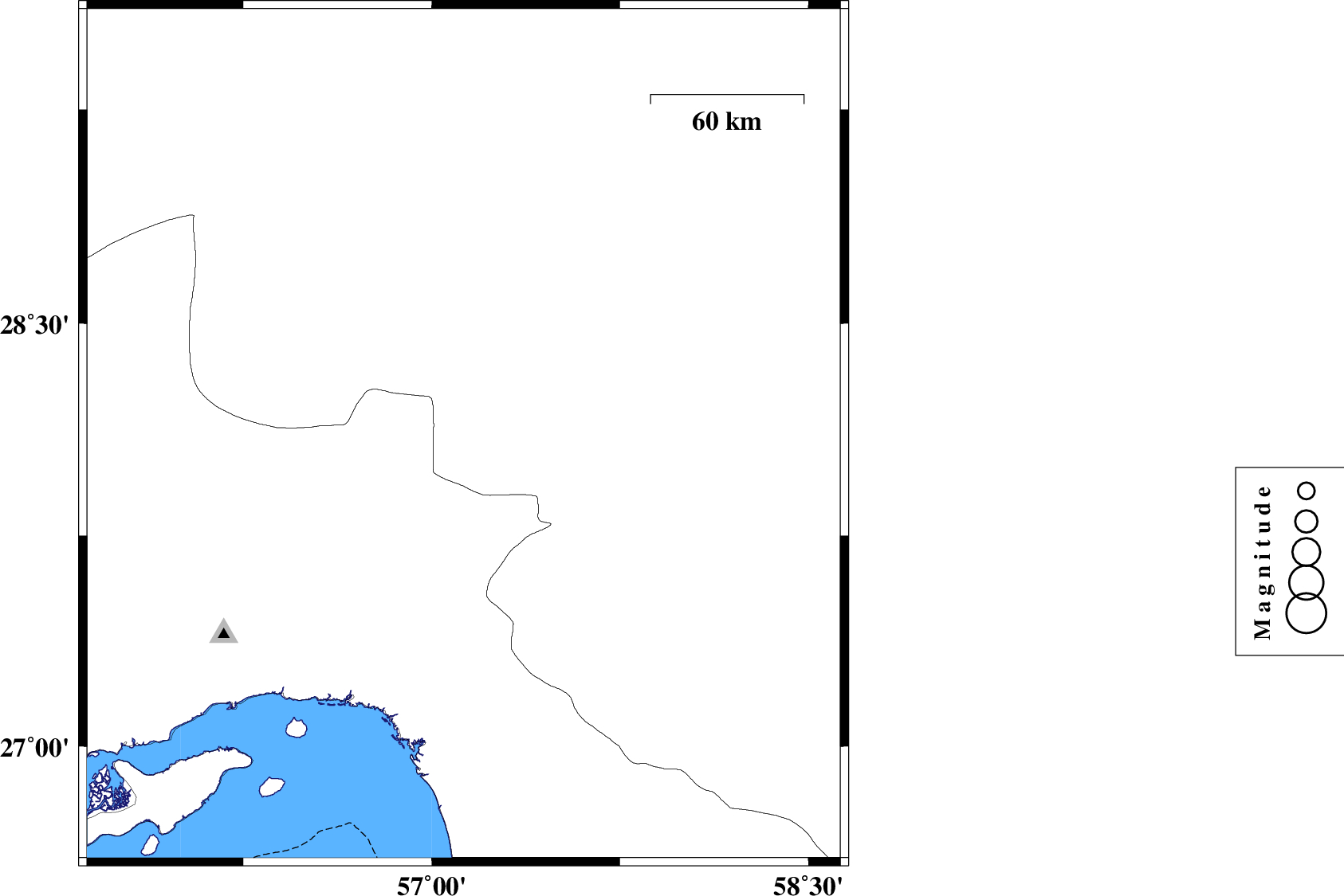 | 2024/07/07 | 04:07:22.0 | 07:37:22.0 | 28.009 | 57.599 | 12 | ML:3.4 | Kerman Province, 11 km of Kahnuj |