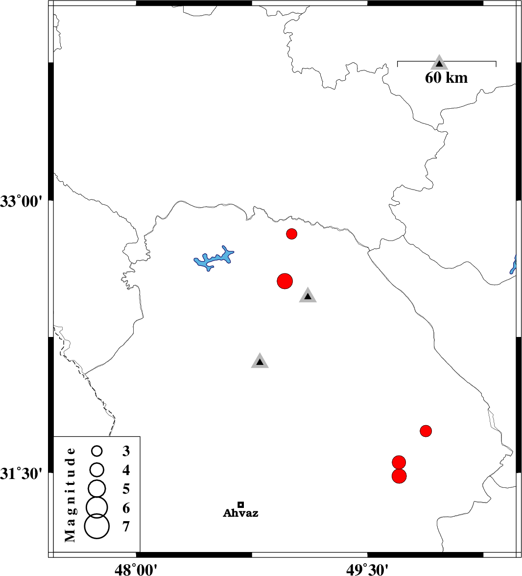 | 2024/07/14 | 17:25:42.6 | 20:55:42.6 | 31.731 | 49.878 | 8 | ML:3.4 | Khoozestan Province, 12 km South of Izeh |