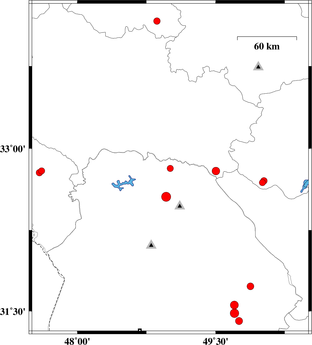 2024/06/17 | 05:45:13.7 | 09:15:13.7 | 32.778 | 47.589 | 12 | ML:3.3 | Ilam Province, 20 km South-East of Abdanan |