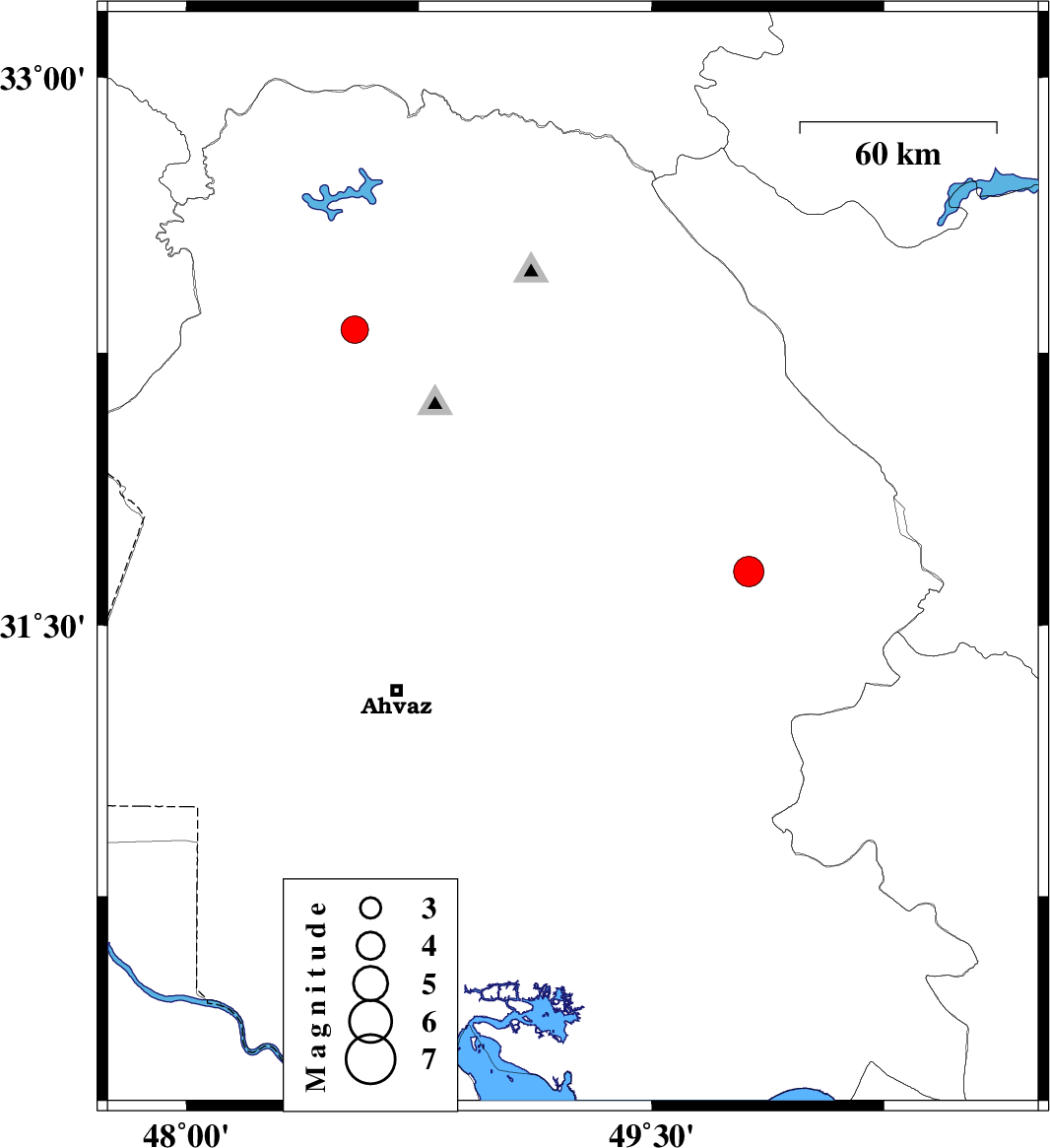 | 2024/08/09 | 22:54:47.1 | 02:24:47.1 | 31.68 | 49.246 | 12 | ML:4.4 | Khoozestan Province, 29 km South of Masjed Soleyman | ||