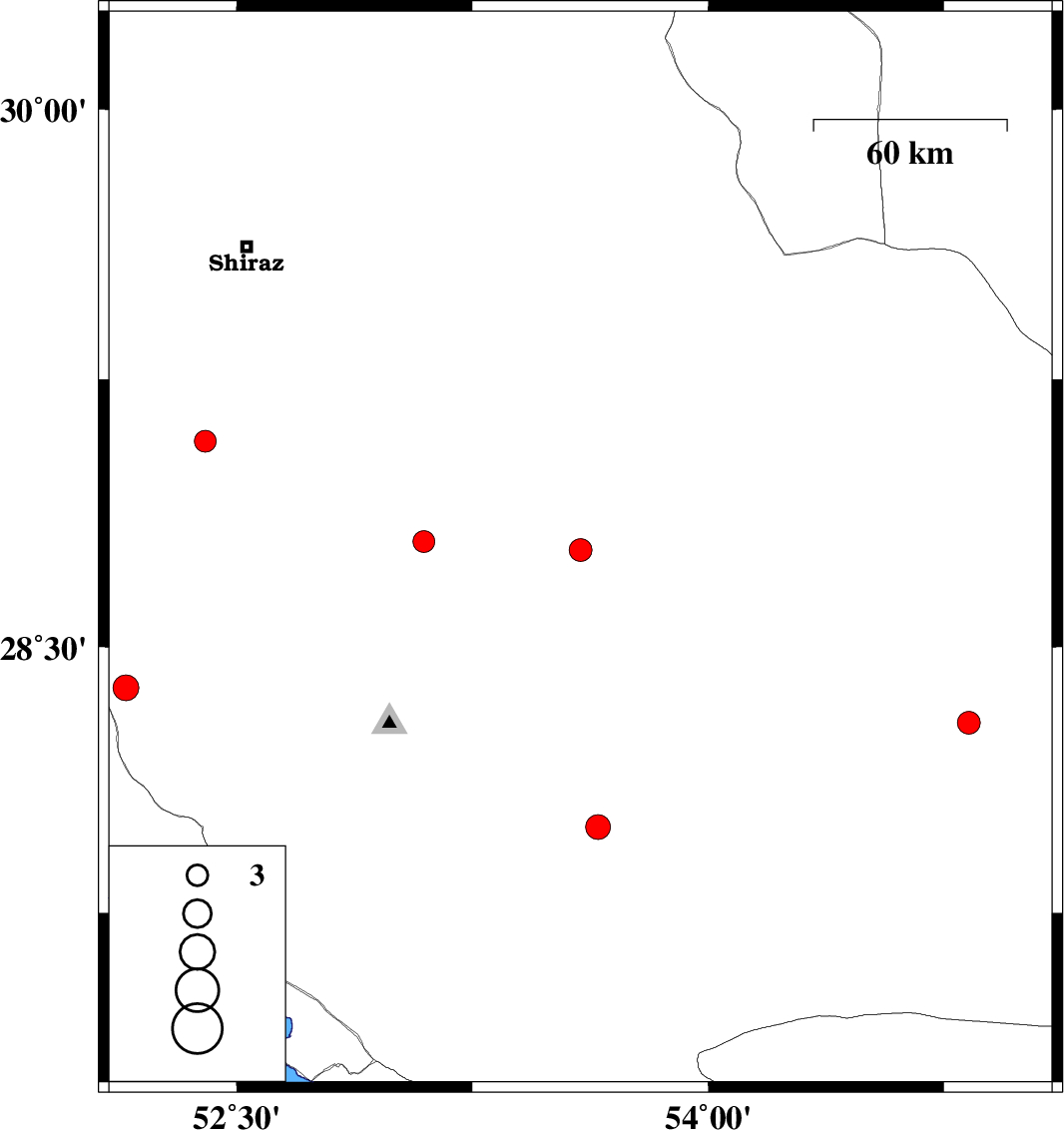 | 2024/07/19 | 07:46:12.4 | 11:16:12.4 | 29.077 | 52.401 | 10 | ML:3.1 | Fars Province, 34 km North-West of Firuz Abad | ||