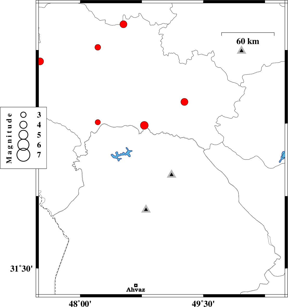 | 2024/08/14 | 08:36:54.6 | 12:06:54.6 | 31.712 | 48.679 | 12 | ML:3 | Khoozestan Province, 43 km North of Ahvaz | ||