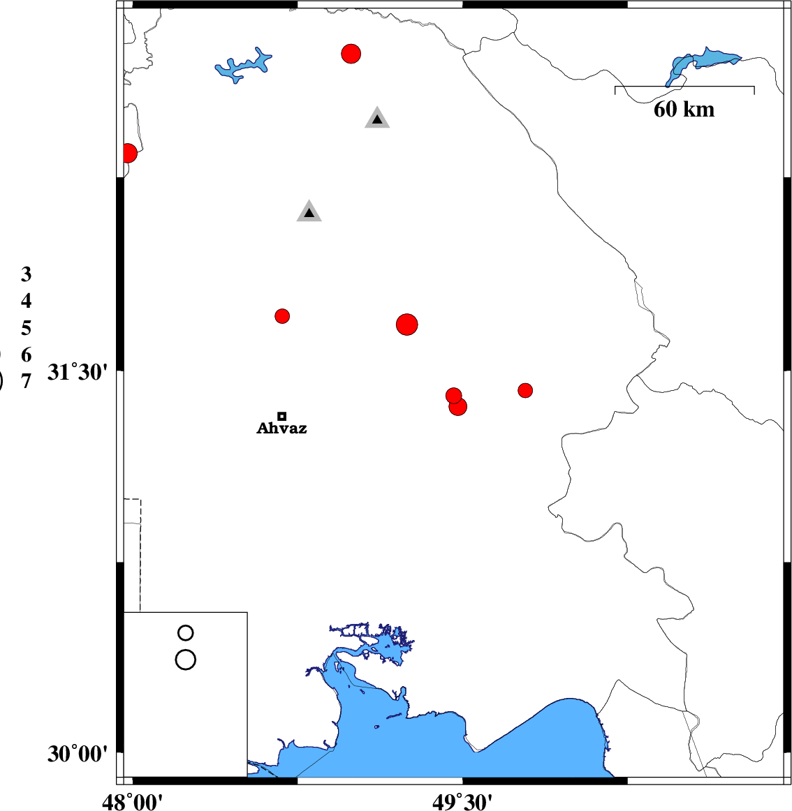 | 2024/08/14 | 08:36:54.6 | 12:06:54.6 | 31.712 | 48.679 | 12 | ML:3 | Khoozestan Province, 43 km North of Ahvaz | ||