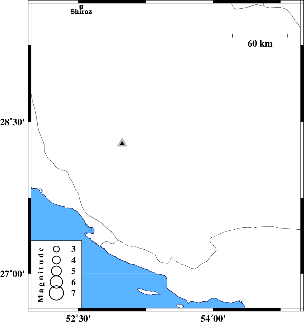 | 2024/08/27 | 20:53:20.9 | 00:23:20.9 | 28.155 | 53.474 | 10 | ML:3 | Fars Province, 39 km South of Jahrom |