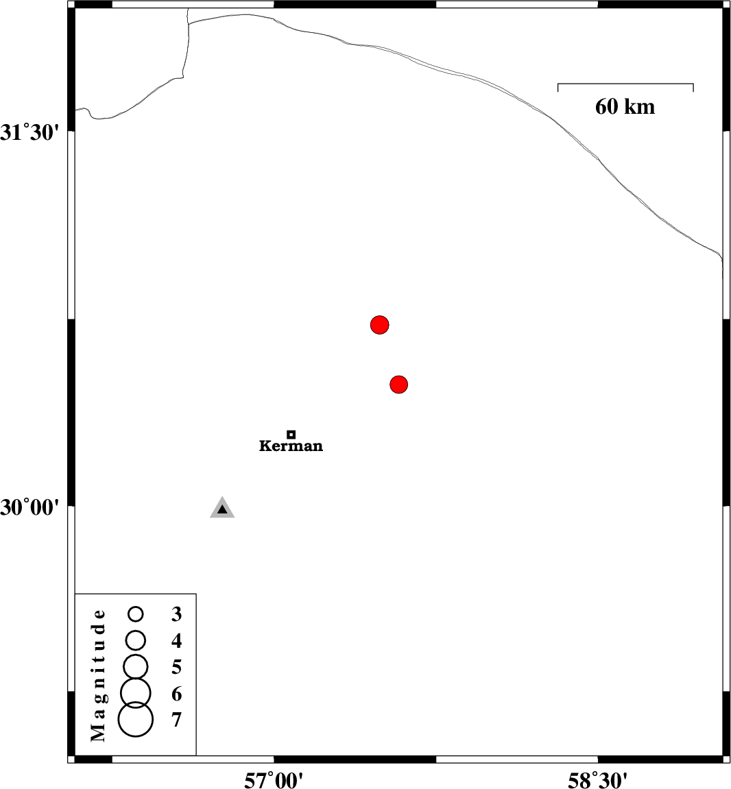 | 2024/08/29 | 07:41:15.2 | 11:11:15.2 | 30.488 | 57.577 | 12 | ML:3.6 | Kerman Province, 53 km North-East of Kerman | ||