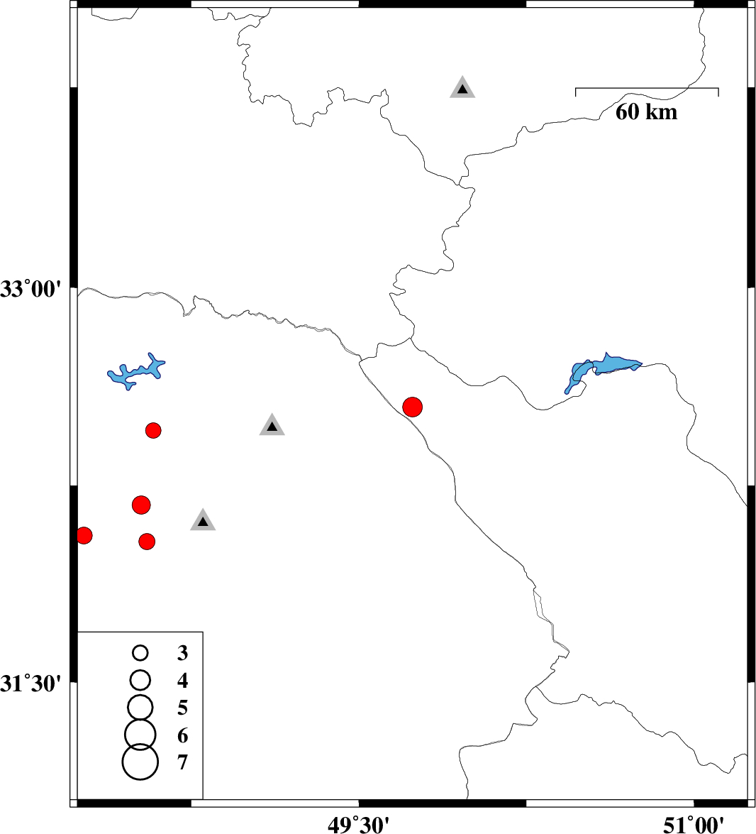 2024/09/02 | 13:19:24.6 | 16:49:24.6 | 32.175 | 48.526 | 12 | ML:3.7 | Khoozestan Province, 26 km -East of Shush |