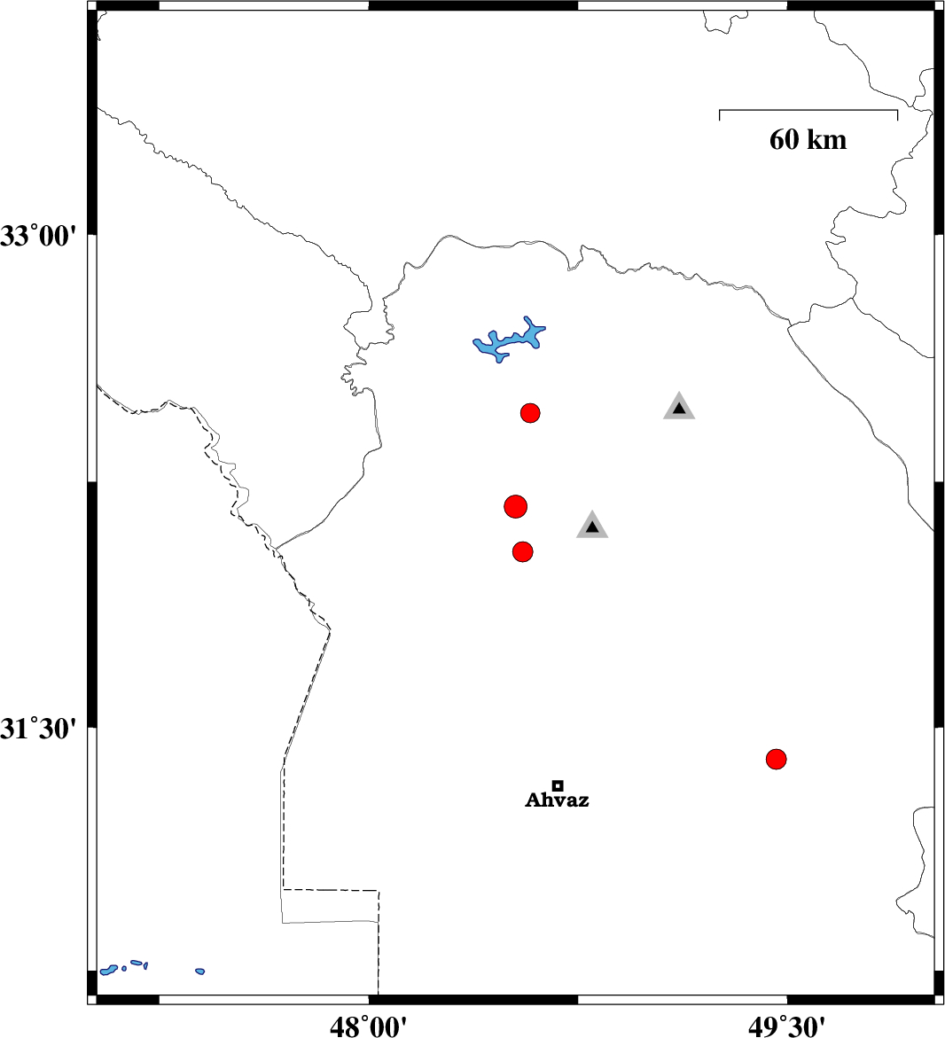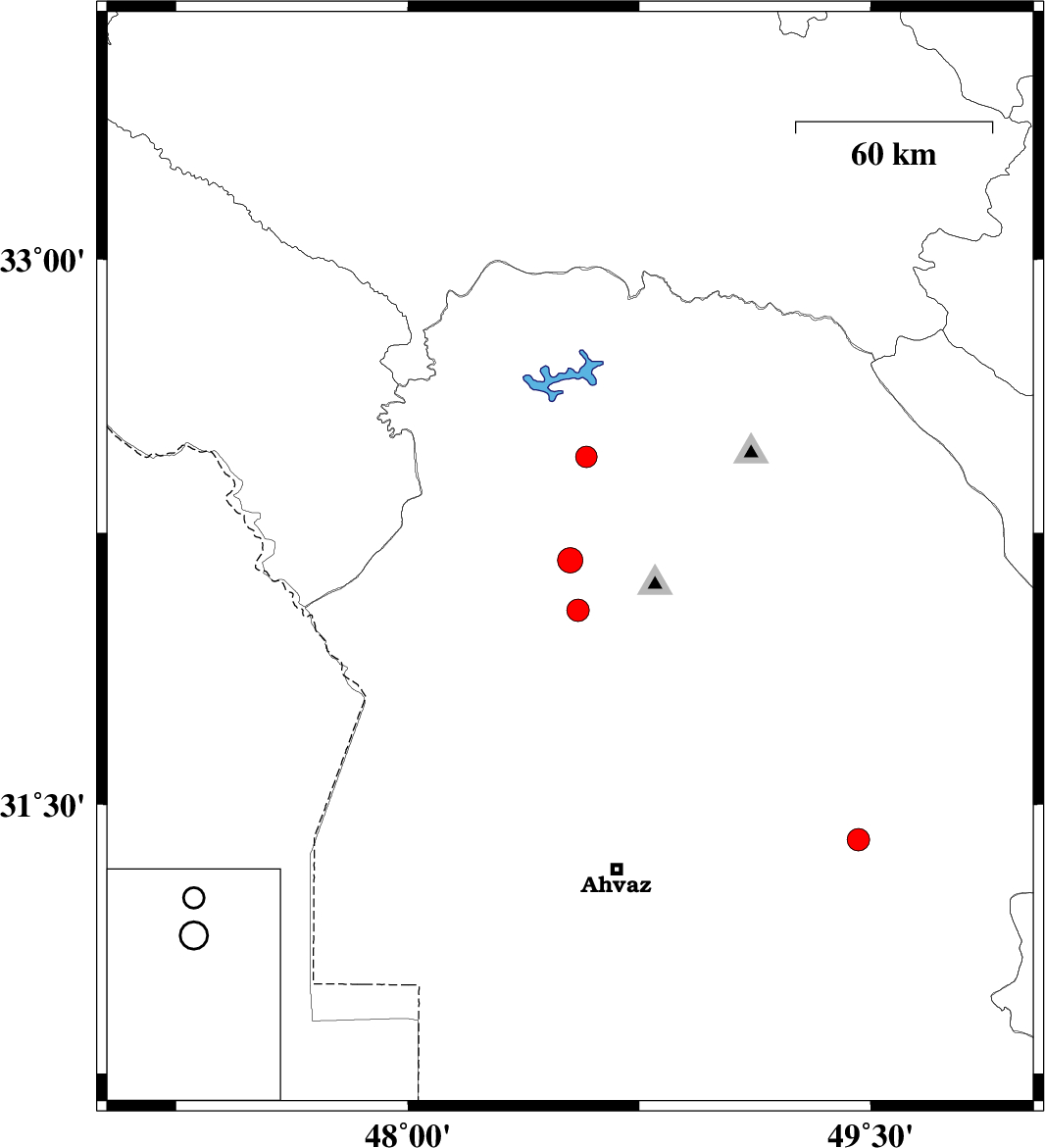 | 2024/09/02 | 19:20:10.8 | 22:50:10.8 | 32.459 | 48.579 | 12 | ML:3.1 | Khoozestan Province, 21 km -East of Andimeshk | ||