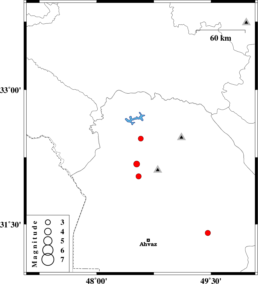 | 2024/09/02 | 19:20:10.8 | 22:50:10.8 | 32.459 | 48.579 | 12 | ML:3.1 | Khoozestan Province, 21 km -East of Andimeshk | ||