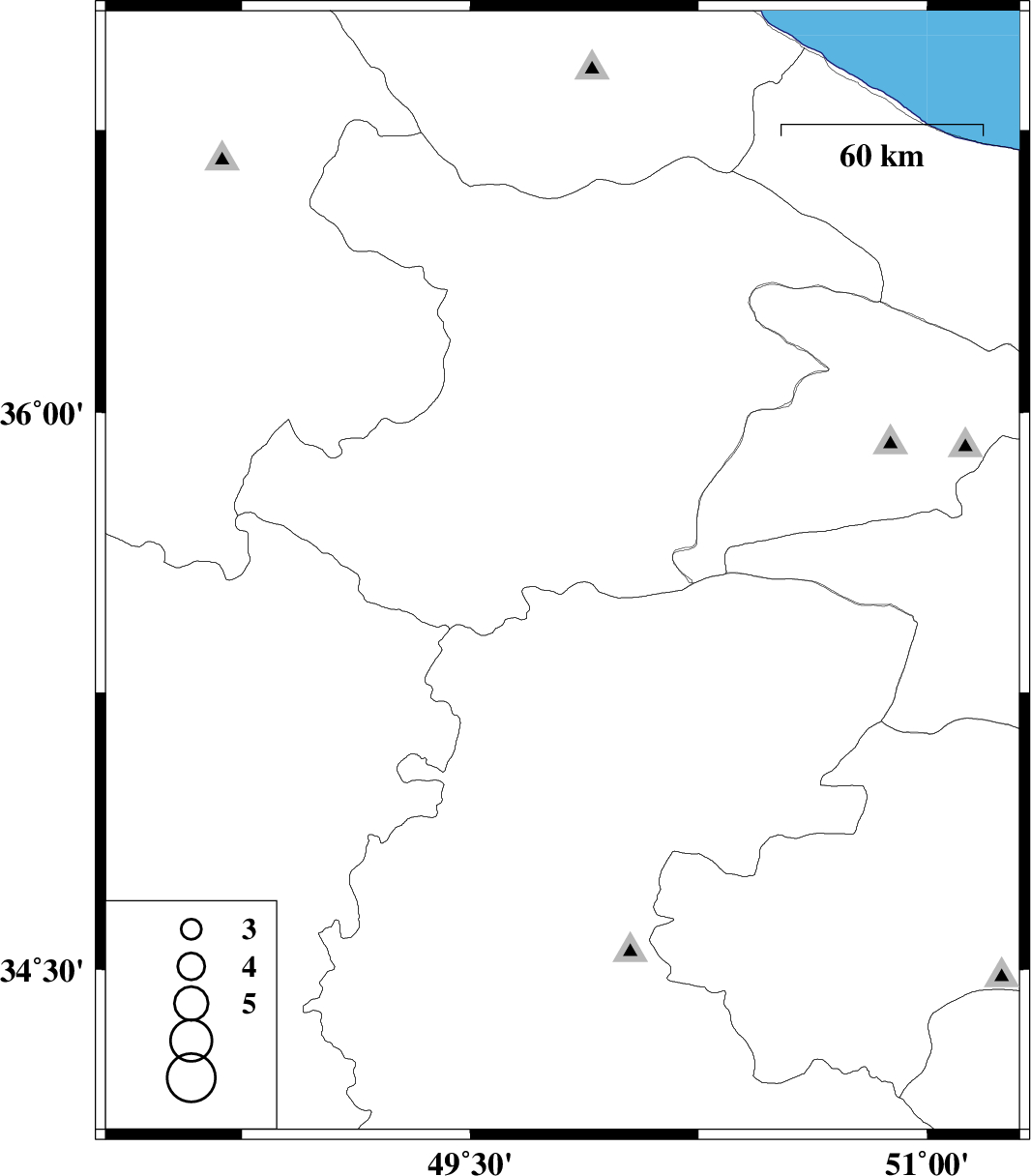 | 2024/10/09 | 02:41:03.5 | 06:11:03.5 | 35.565 | 49.803 | 7 | ML:3.8 | Ghazvin Province, 33 km South-West of Buinzara |