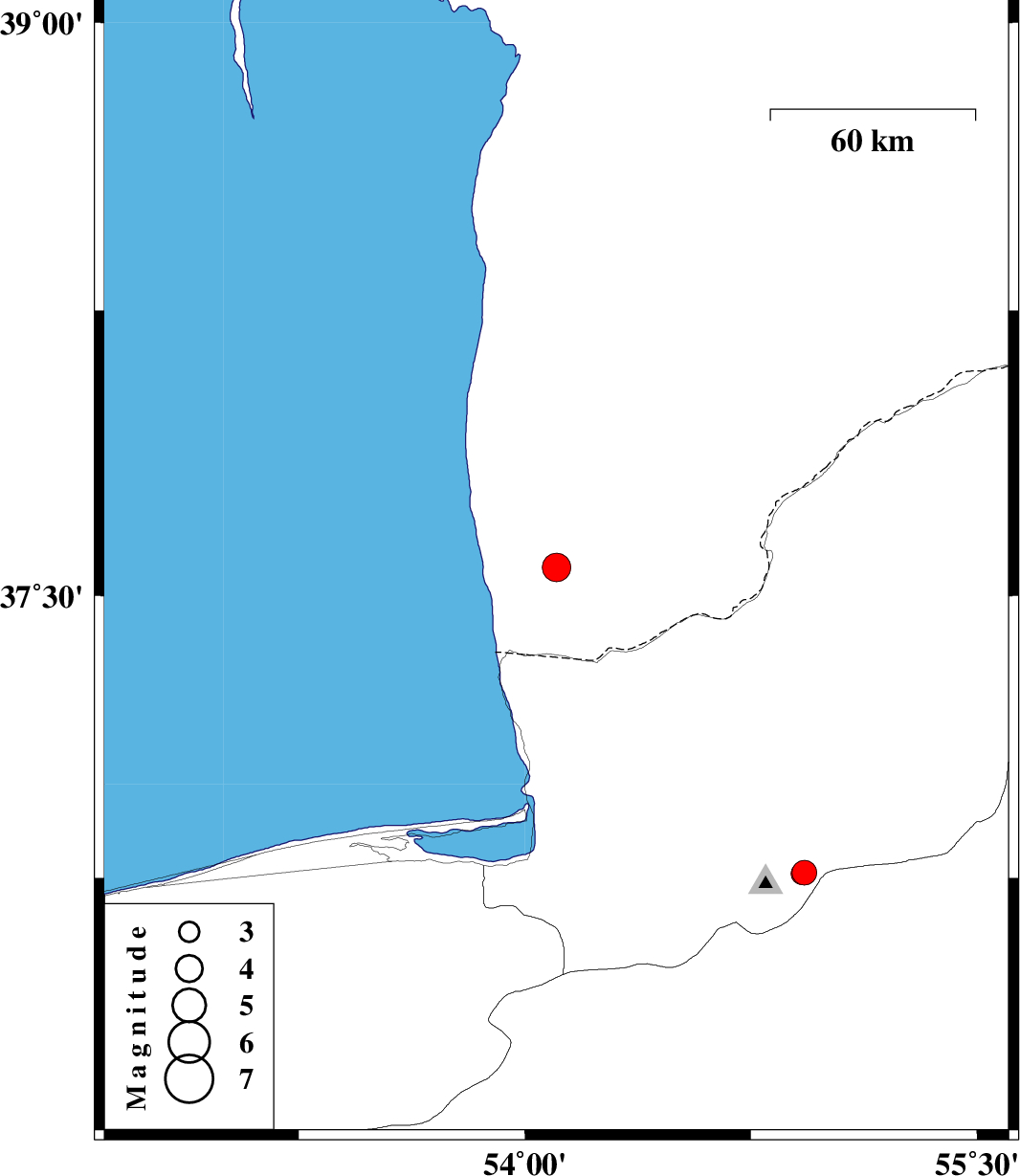 | 2024/10/16 | 13:03:33.1 | 16:33:33.1 | 36.764 | 54.928 | 12 | ML:3.6 | Golestan Province, 17 km South of Ali Abad | ||