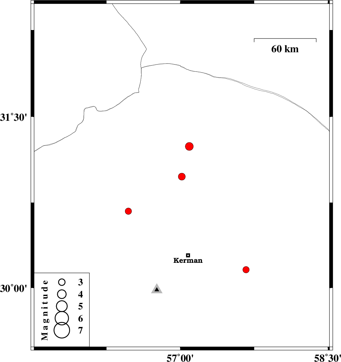 | 2024/10/17 | 08:46:07.0 | 12:16:07.0 | 30.675 | 56.472 | 8 | ML:3 | Kerman Province, 18 km South of Zarand | ||