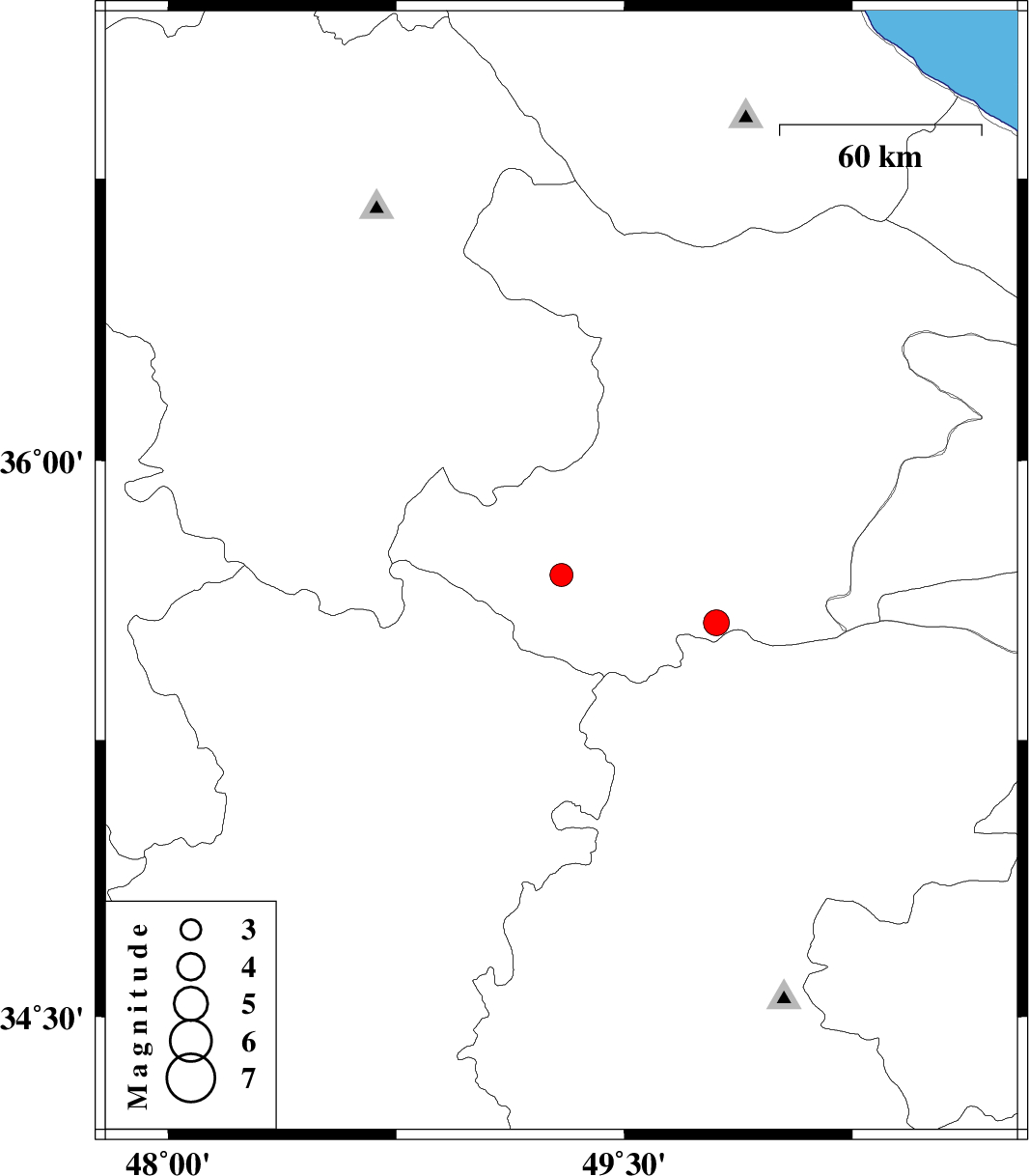 | 2024/10/19 | 05:16:08.1 | 08:46:08.1 | 35.693 | 49.293 | 9 | ML:3.4 | Ghazvin Province, 51 km South of Abhar | ||