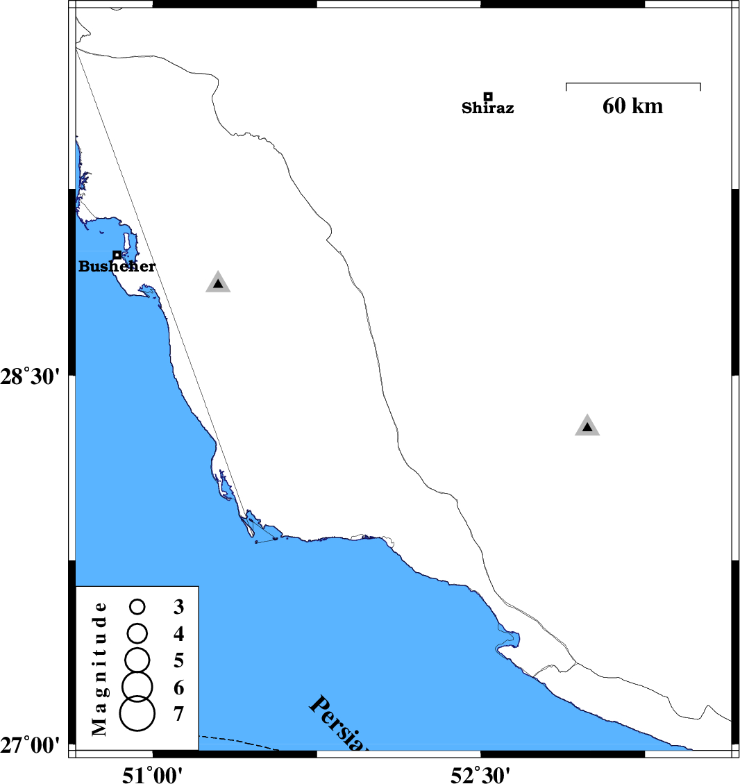 | 2024/10/24 | 00:38:42.3 | 04:08:42.3 | 28.474 | 52.147 | 12 | ML:4.7 | Fars Province, 45 km South of Farashband |