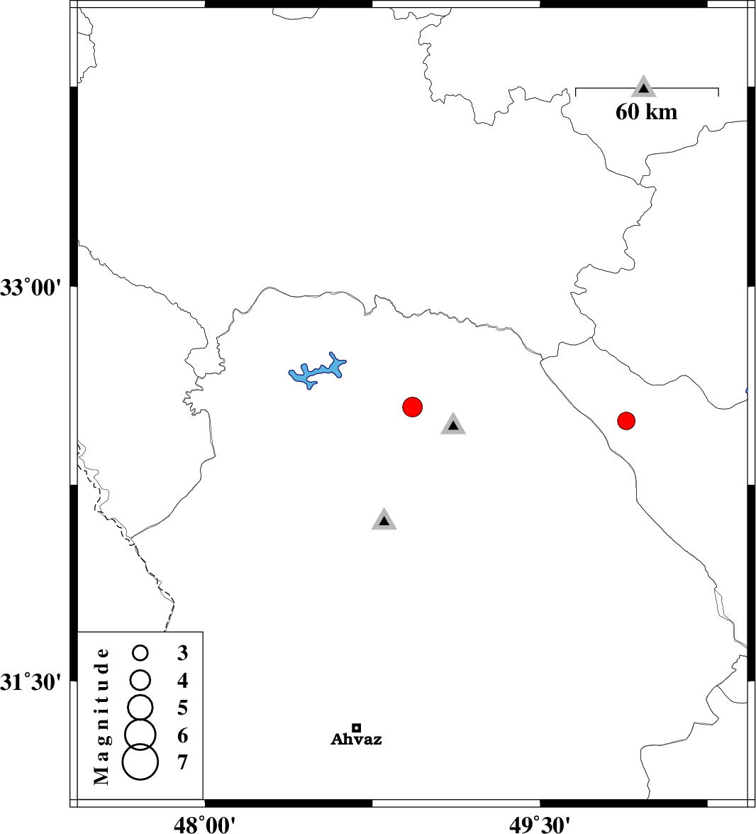 | 2024/10/24 | 06:46:18.7 | 10:16:18.7 | 32.545 | 48.929 | 12 | ML:4 | Khoozestan Province, 24 km North-West of Lali | ||