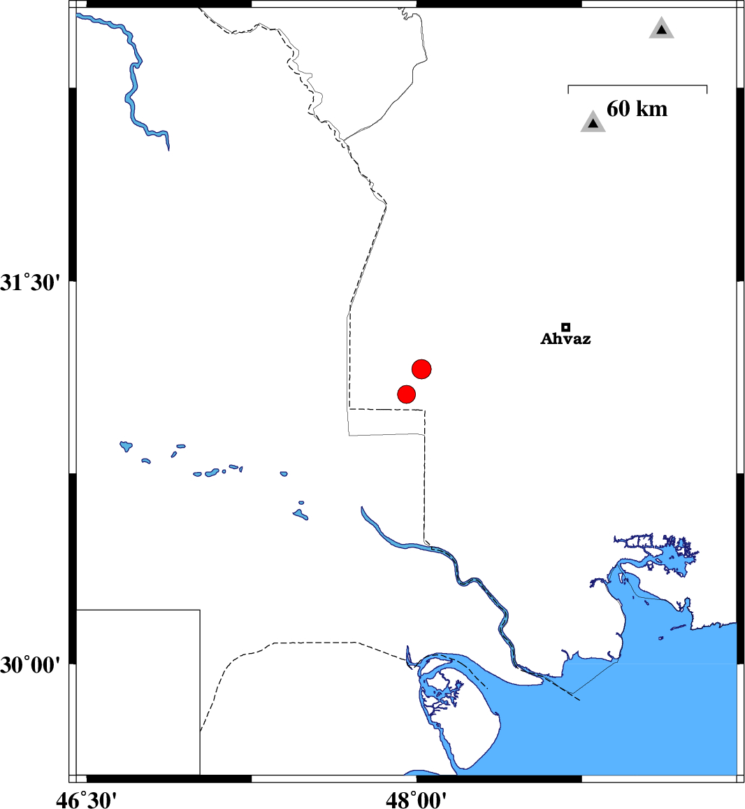 | 2024/11/14 | 21:08:23.2 | 00:38:23.2 | 31.157 | 48.021 | 16 | ML:3.9 | Khoozestan Province, 47 km South-West of Susangerd | ||