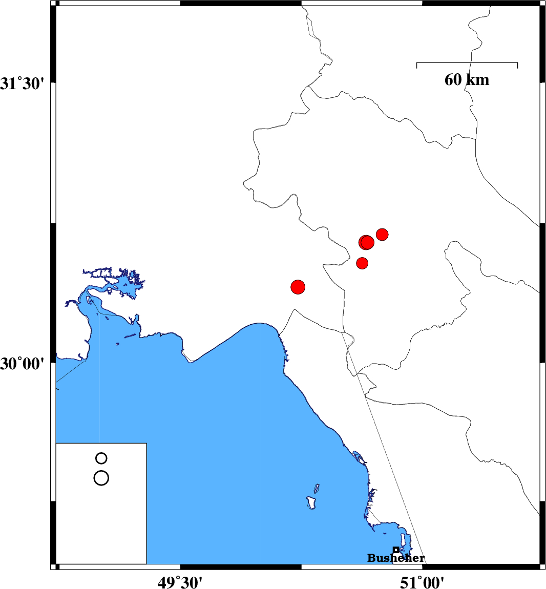 | 2024/11/15 | 00:15:16.7 | 03:45:16.7 | 30.646 | 50.651 | 12 | ML:4.1 | Kohkiluieh va boyerahmad Province, 18 km South of Dehdasht | ||