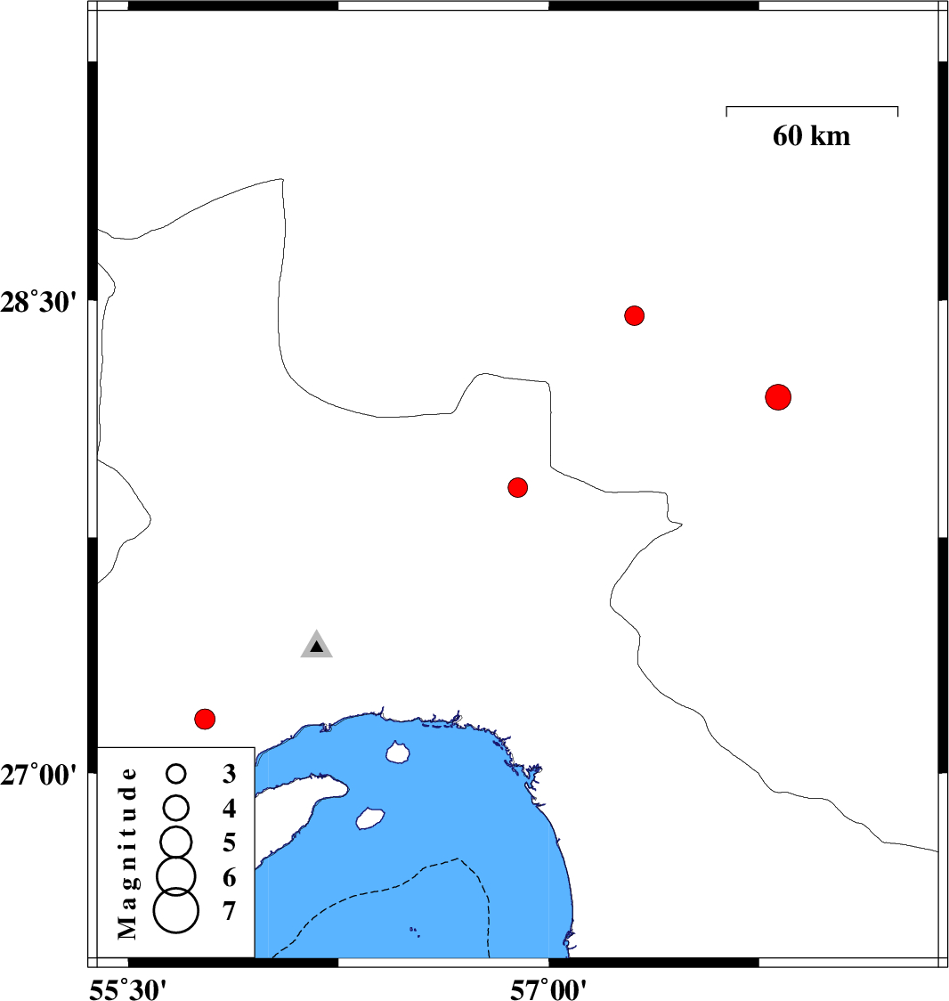 | 2024/10/29 | 03:44:26.1 | 07:14:26.1 | 27.172 | 55.773 | 12 | ML:3.2 | Hormozgan Province, 50 km -West of Bandar-e abbas |