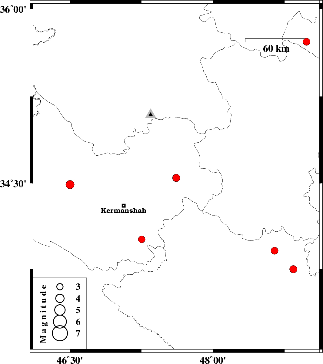 | 2024/11/23 | 13:06:47.9 | 16:36:47.9 | 34.011 | 47.254 | 12 | ML:3.3 | Kermanshah Province, 37 km South-East of Kermanshah | ||