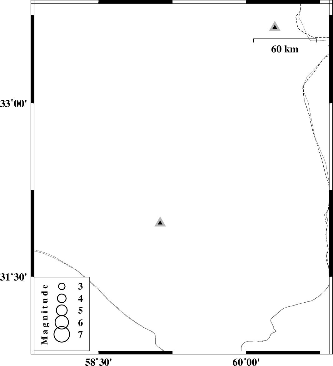 | 2024/11/28 | 03:56:37.9 | 07:26:37.9 | 32.35 | 59.344 | 10 | ML:3.7 | Khorasan(south) Province, 62 km South-East of Birjand |