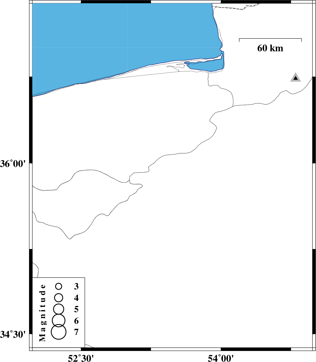 | 2024/11/29 | 21:42:30.2 | 01:12:30.2 | 35.879 | 53.48 | 12 | ML:3.2 | Semnan Province, 35 km North of Semnan |