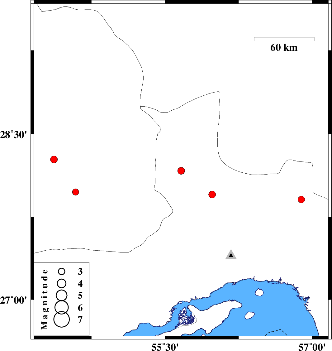 | 2024/11/12 | 05:58:08.3 | 09:28:08.3 | 27.976 | 54.588 | 17 | ML:3 | Fars Province, 41 km North-East of Lar | ||