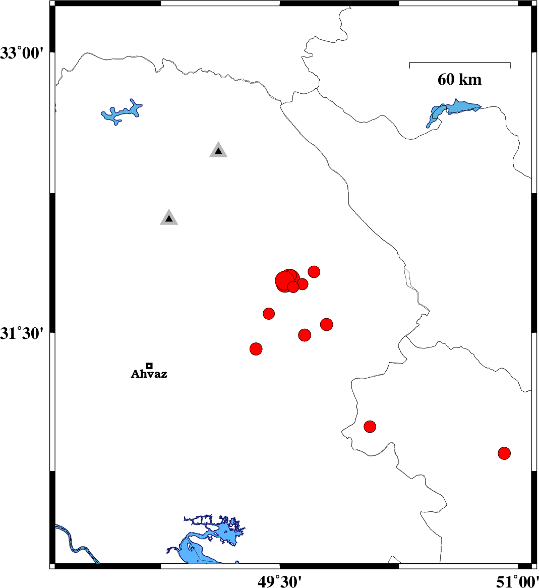 2024/12/05 | 05:14:12.9 | 08:44:12.9 | 31.602 | 49.43 | 12 | ML:3.2 | Khoozestan Province, 39 km South-East of Masjed Soleyman | ||