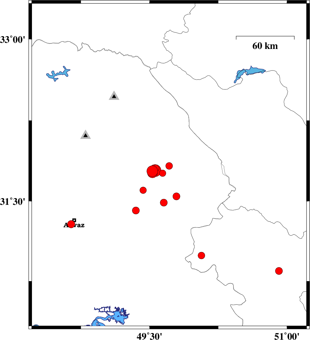 2024/12/05 | 05:14:12.9 | 08:44:12.9 | 31.602 | 49.43 | 12 | ML:3.2 | Khoozestan Province, 39 km South-East of Masjed Soleyman | ||