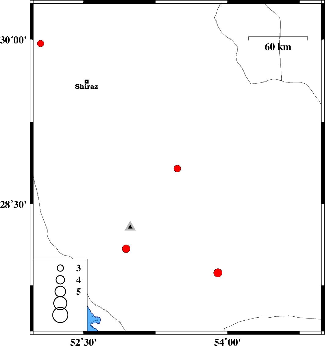 | 2024/11/28 | 05:43:10.5 | 09:13:10.5 | 27.865 | 53.9 | 12 | ML:3.9 | Fars Province, 48 km North-West of Lar | ||