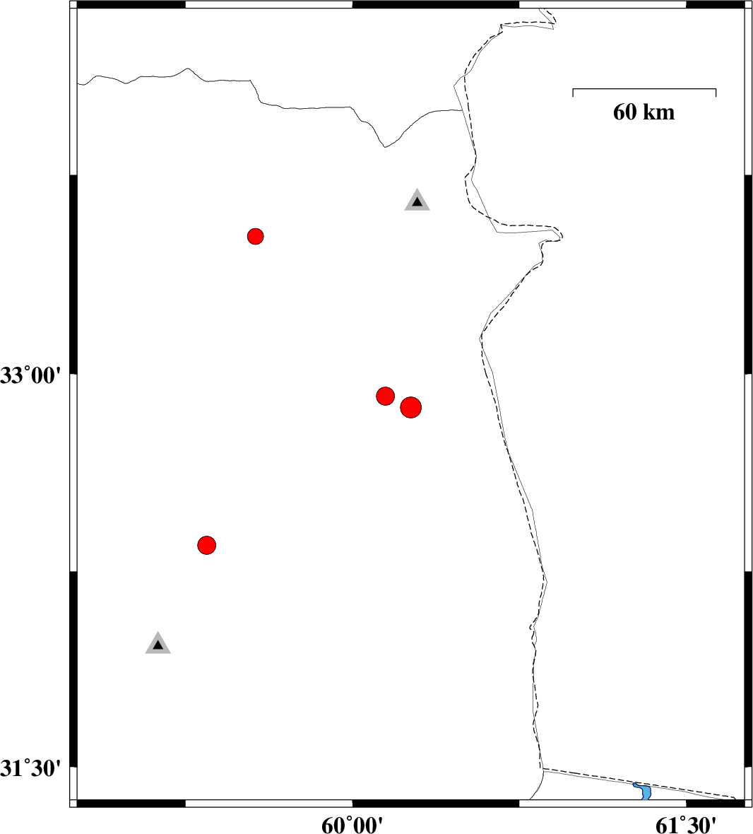 | 2024/11/28 | 03:56:37.9 | 07:26:37.9 | 32.35 | 59.344 | 10 | ML:3.7 | Khorasan(south) Province, 62 km South-East of Birjand |