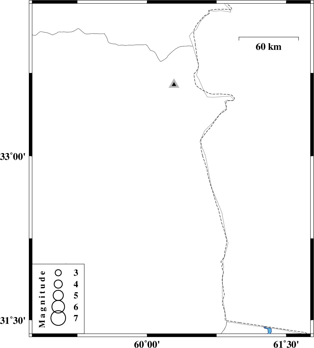 | 2024/12/20 | 23:31:40.2 | 03:01:40.2 | 32.874 | 60.262 | 12 | ML:4.3 | Khorasan(south) Province, 52 km North-East of Sarbisheh |