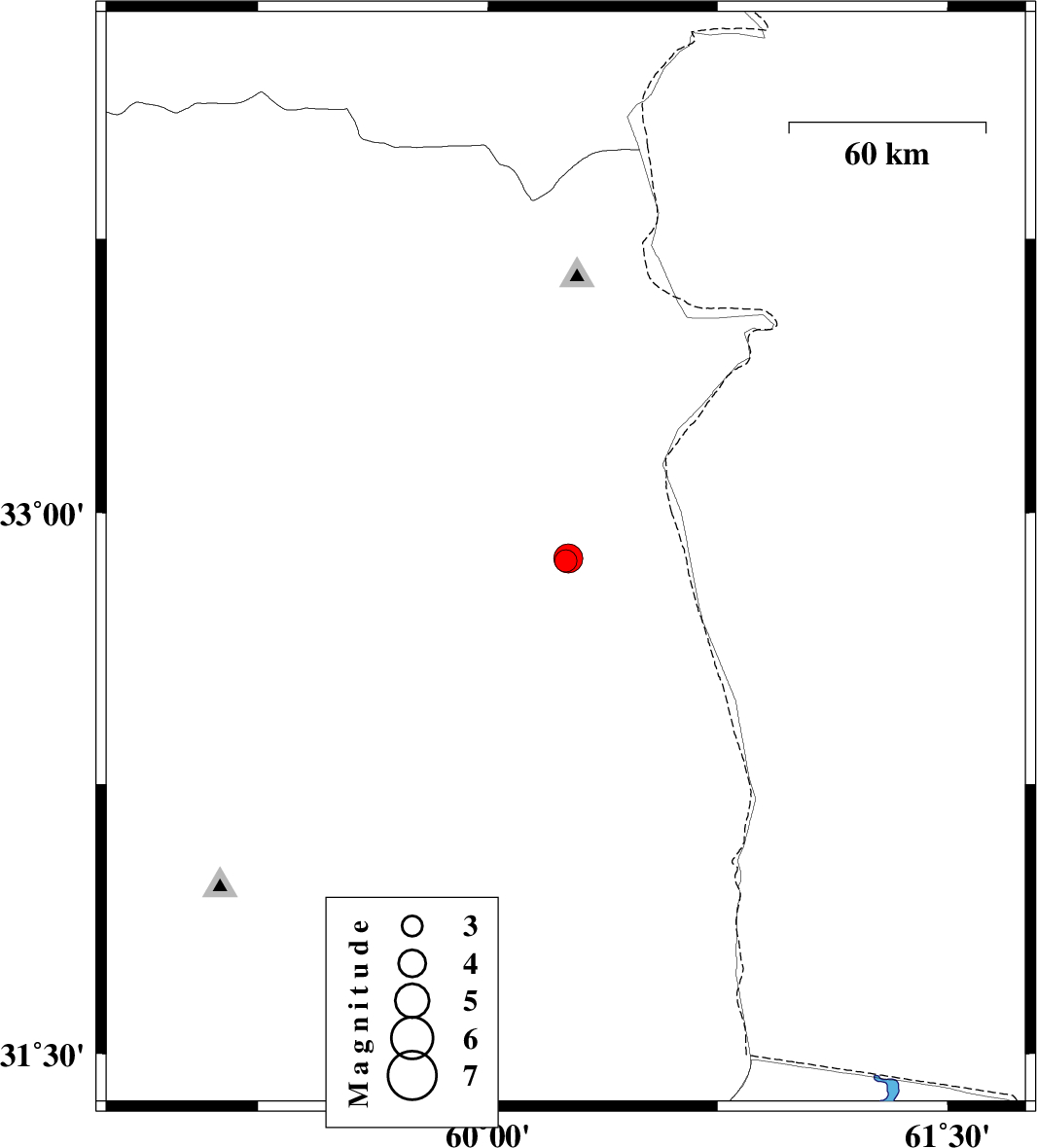 | 2024/12/21 | 02:59:40.6 | 06:29:40.6 | 32.868 | 60.254 | 12 | ML:3.2 | Khorasan(south) Province, 51 km North-East of Sarbisheh | ||