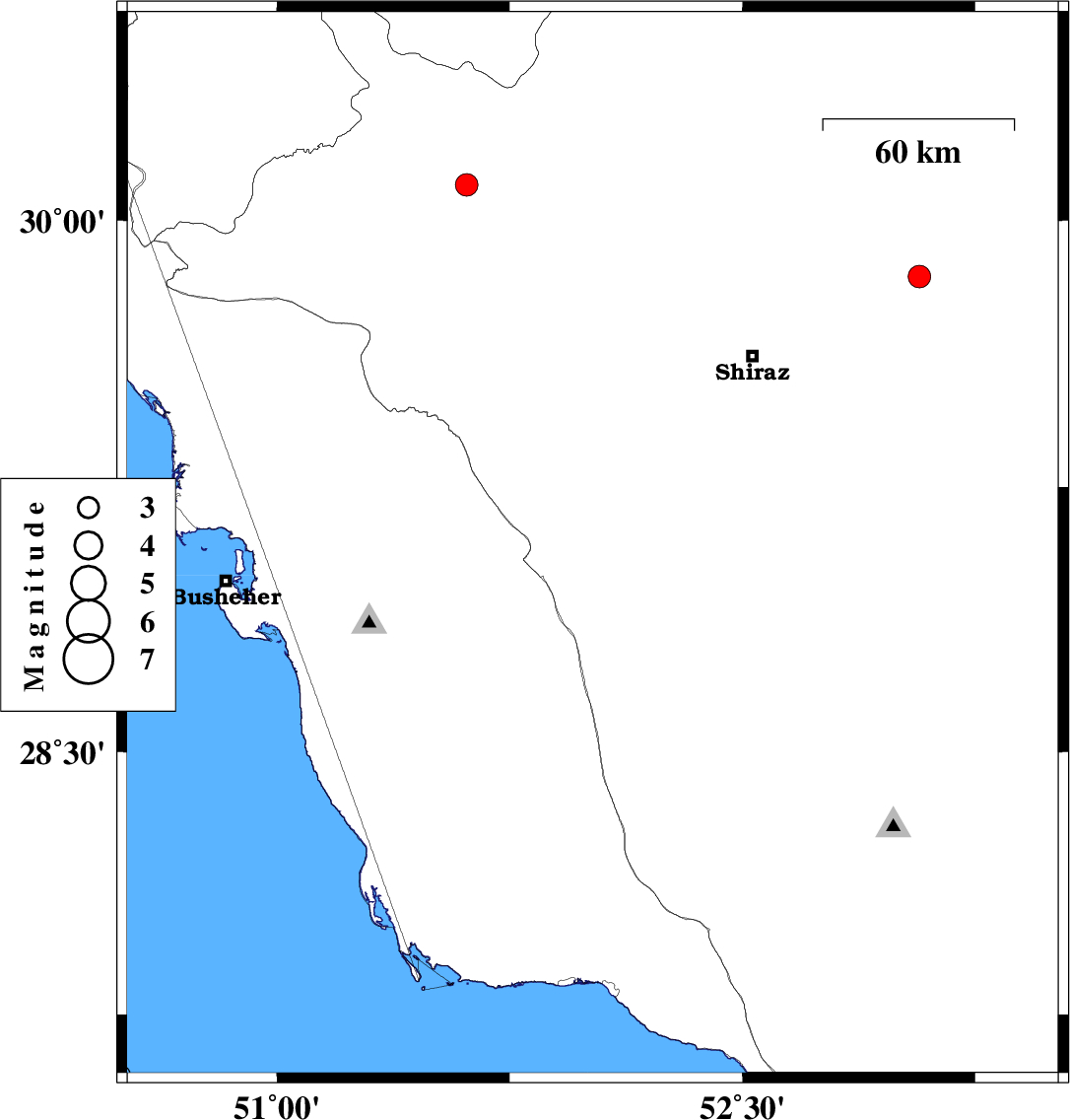 | 2024/12/21 | 04:51:48.9 | 08:21:48.9 | 29.084 | 52.018 | 12 | ML:3.2 | Fars Province, 25 km North of Farashband | ||