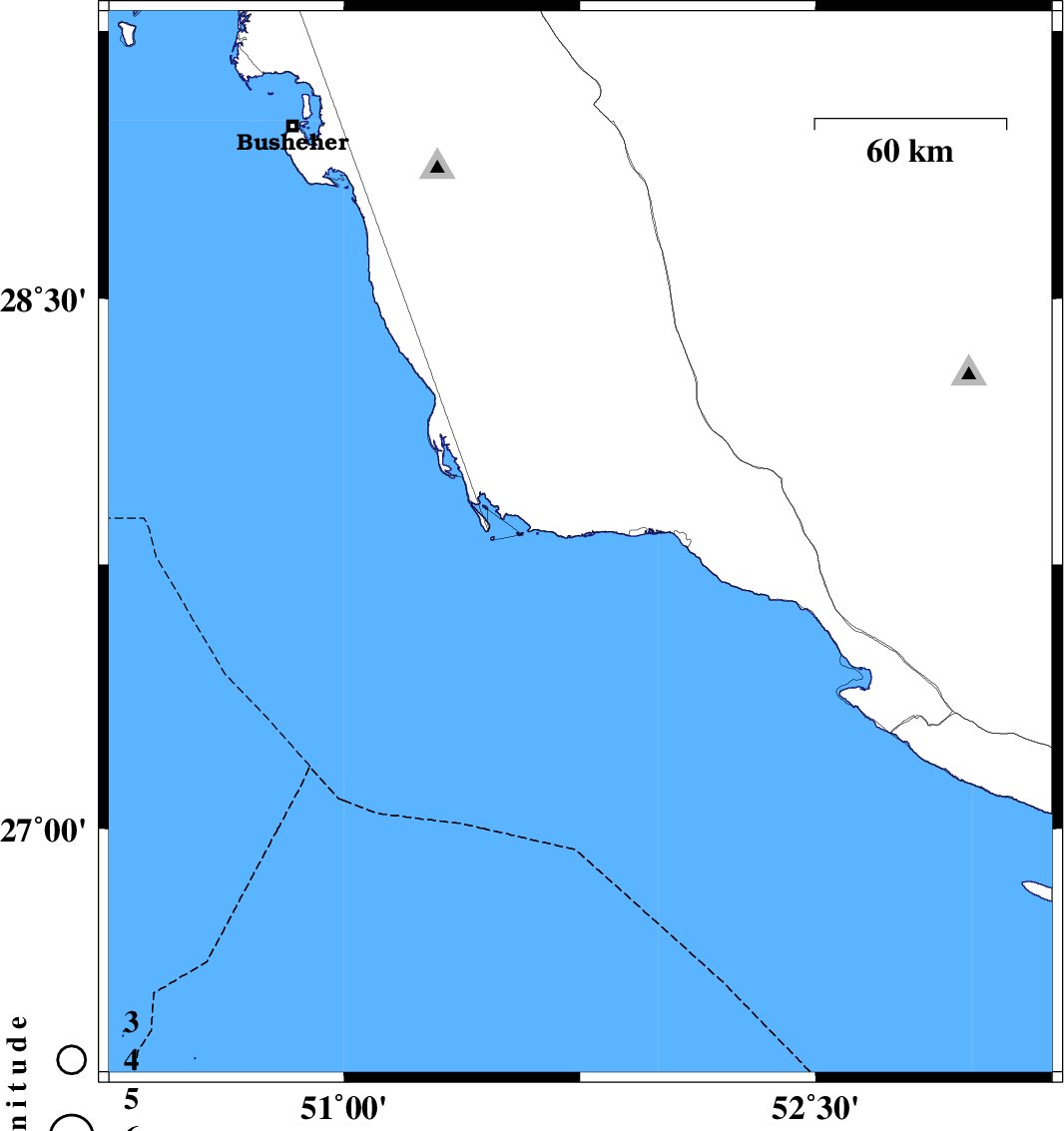 | 2025/01/04 | 21:42:37.2 | 01:12:37.2 | 27.737 | 51.845 | 37 | ML:4.1 | Persian Gulf, 23 km -West of Bandar-e kangan | ||