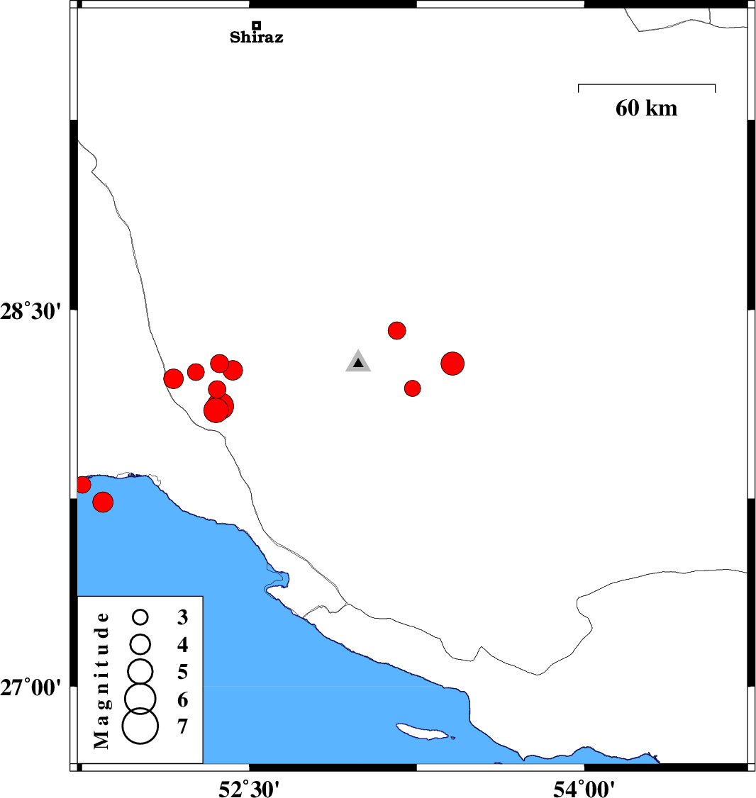 2025/01/06 19:58:23.6 23:28:23.6 28.28752.36712 ML:3.6 Fars Province, 51 km North of Jam