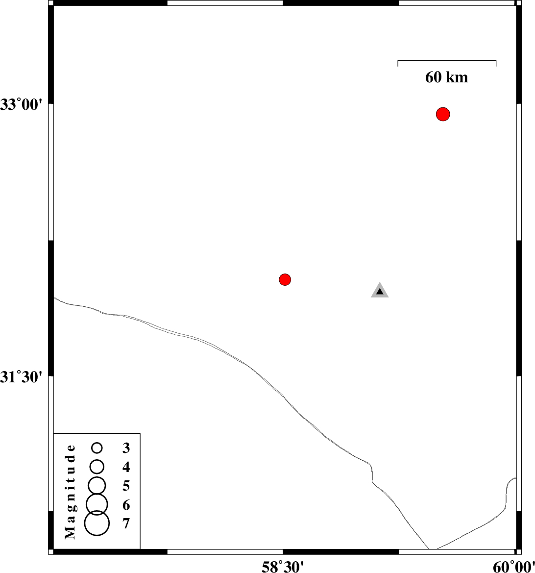 | 2025/01/07 | 03:10:06.5 | 06:40:06.5 | 32.942 | 59.536 | 10 | ML:3.9 | Khorasan(south) Province, 29 km -East of Birjand |