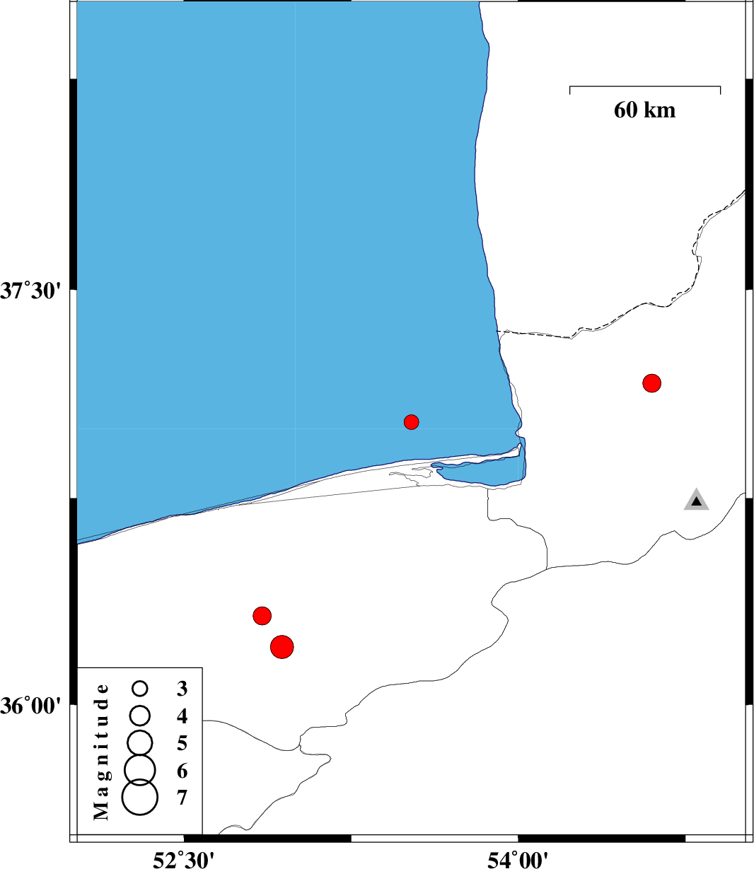| 2025/01/10 | 14:07:32.1 | 17:37:32.1 | 37.024 | 53.52 | 10 | ML:2.9 | Caspian Sea, 37 km North of Behshahr | ||