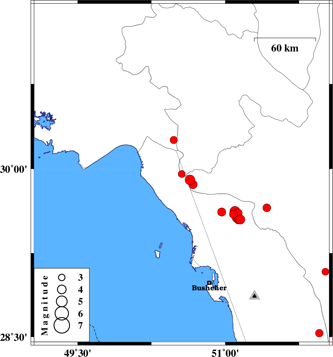 2025/01/16 | 19:20:52.1 | 22:50:52.1 | 29.568 | 51.123 | 12 | ML:4.8 | Bushehr Province, 35 km North of Borazjan | ||