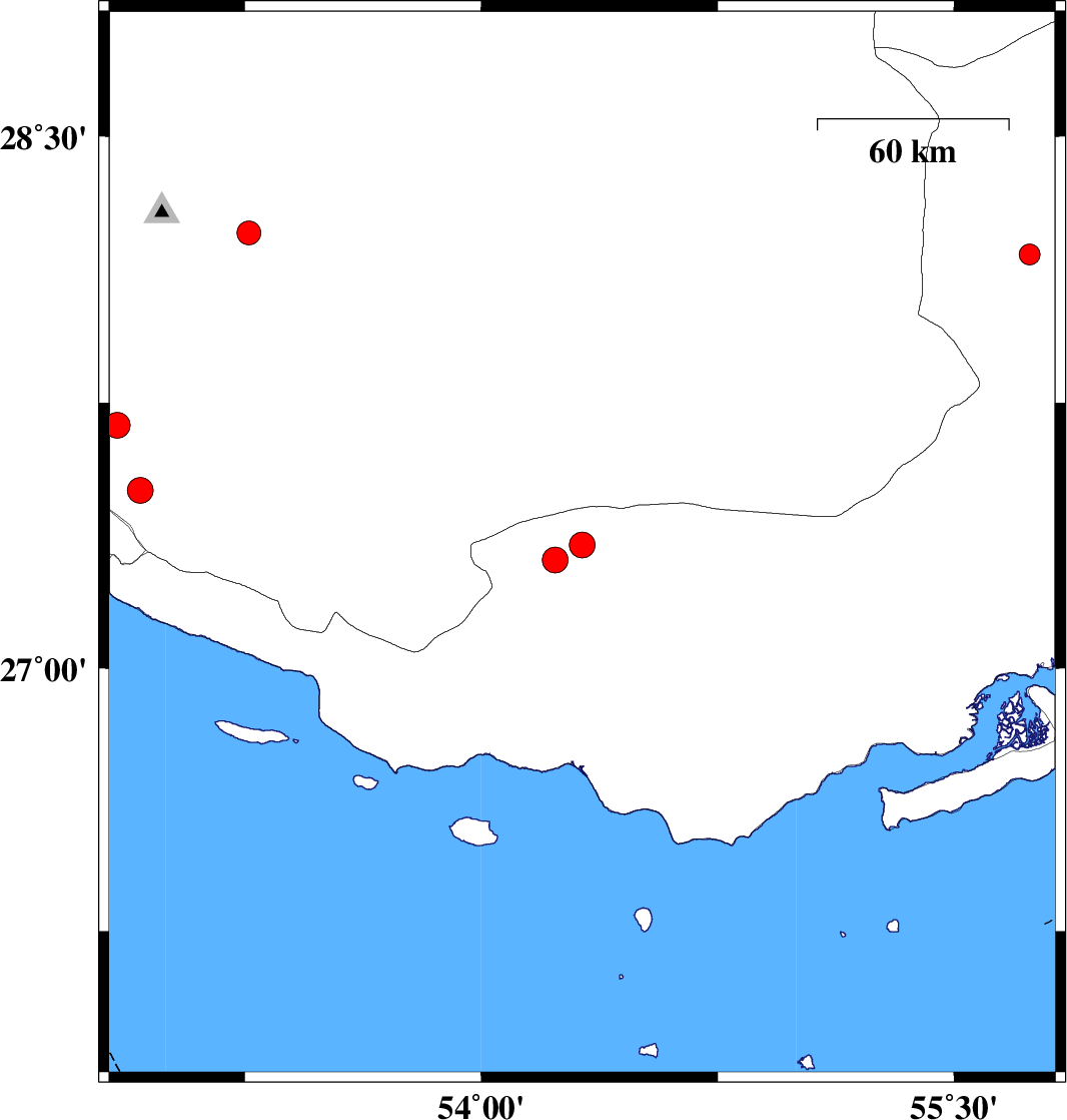 2025/01/26 | 00:13:30.9 | 03:43:30.9 | 27.349 | 54.32 | 31 | ML:3.6 | Hormozgan Province, 17 km North of Bastak | ||