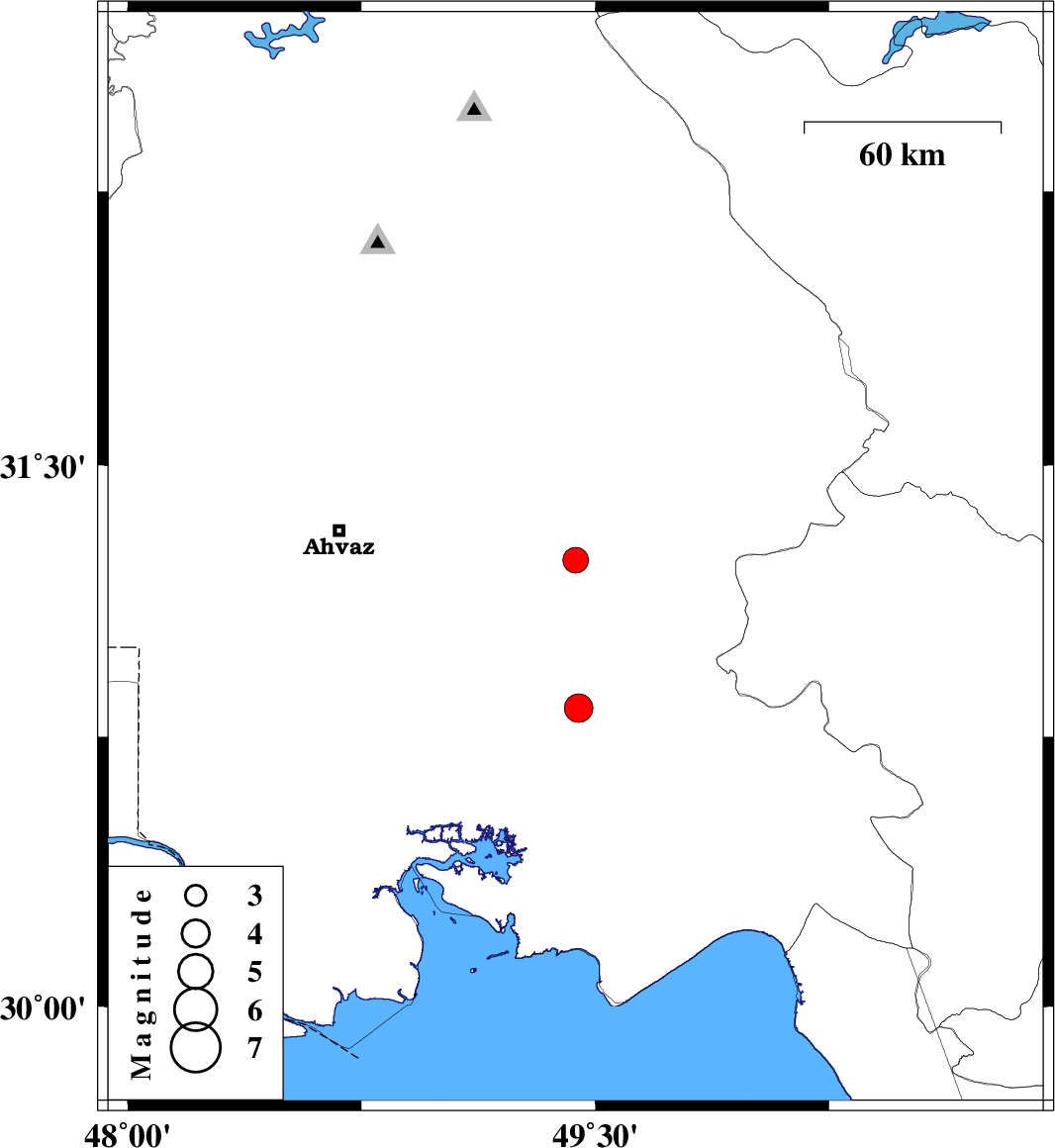 | 2025/01/30 | 08:37:40.9 | 12:07:40.9 | 30.83 | 49.446 | 14 | ML:4.1 | Khoozestan Province, 26 km -West of Omidiyeh |
