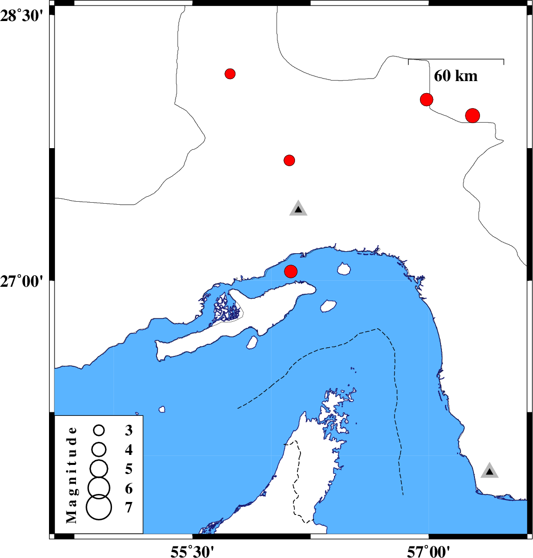 | 2025/01/25 | 03:49:05.9 | 07:19:05.9 | 27.681 | 56.114 | 12 | ML:3.1 | Hormozgan Province, 58 km North-West of Bandar-e abbas | ||