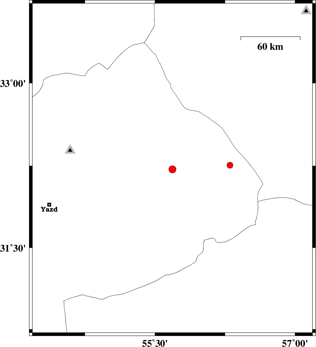 | 2025/04/02 | 12:52:29.9 | 16:22:29.9 | 32.218 | 55.687 | 8 | ML:3.5 | Yazd Province, 74 km North-East of Bafq |
