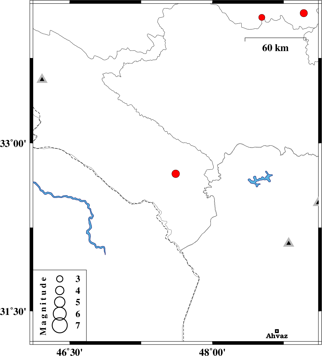 | 2025/04/06 | 23:34:20.7 | 03:04:20.7 | 32.728 | 47.614 | 12 | ML:3.7 | Ilam Province, 26 km South-East of Abdanan | ||