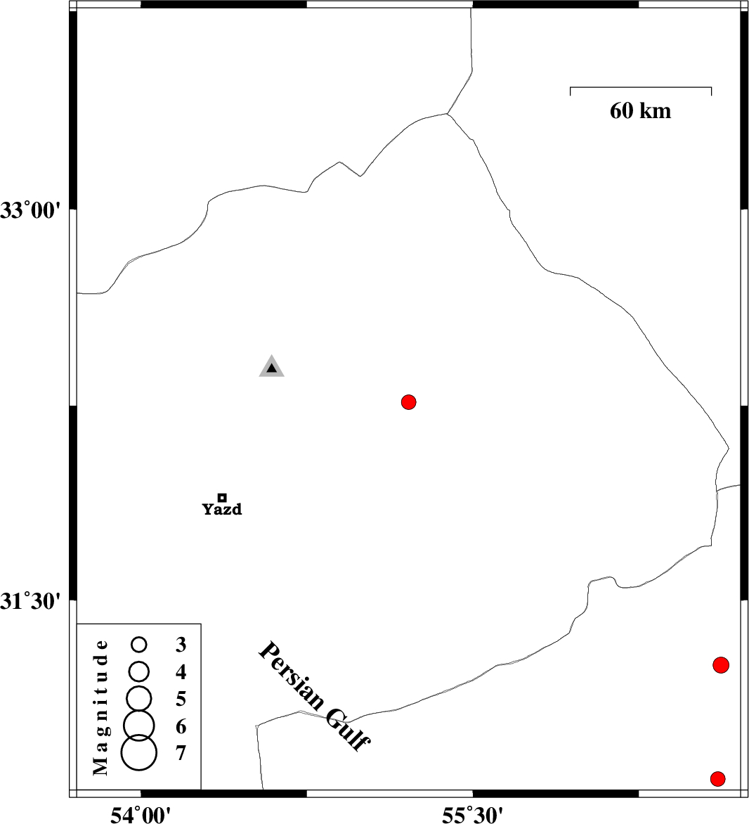 | 2025/03/19 | 12:06:30.4 | 15:36:30.4 | 32.263 | 55.21 | 12 | ML:3 | Yazd Province, 76 km North-West of Bafq | ||