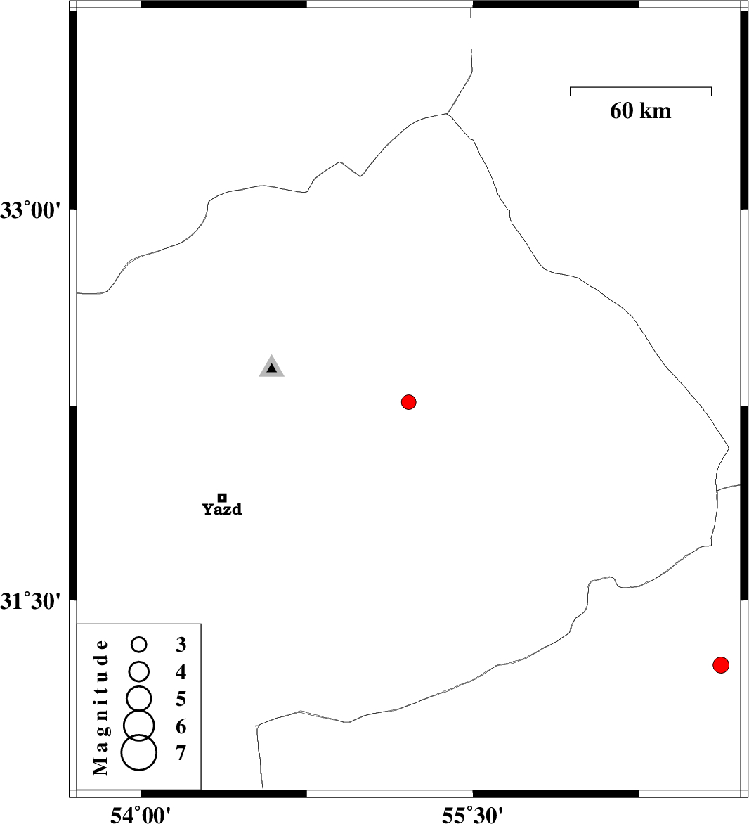 | 2025/03/19 | 12:06:30.4 | 15:36:30.4 | 32.263 | 55.21 | 12 | ML:3 | Yazd Province, 76 km North-West of Bafq | ||