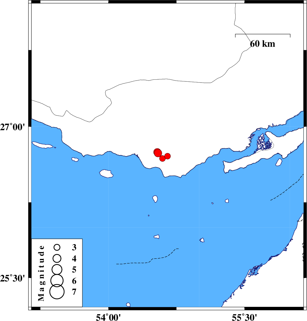 | 2025/04/05 | 01:10:14.6 | 04:40:14.6 | 26.685 | 54.596 | 12 | ML:3 | Hormozgan Province, 31 km North-West of Bandar-e lengeh | ||