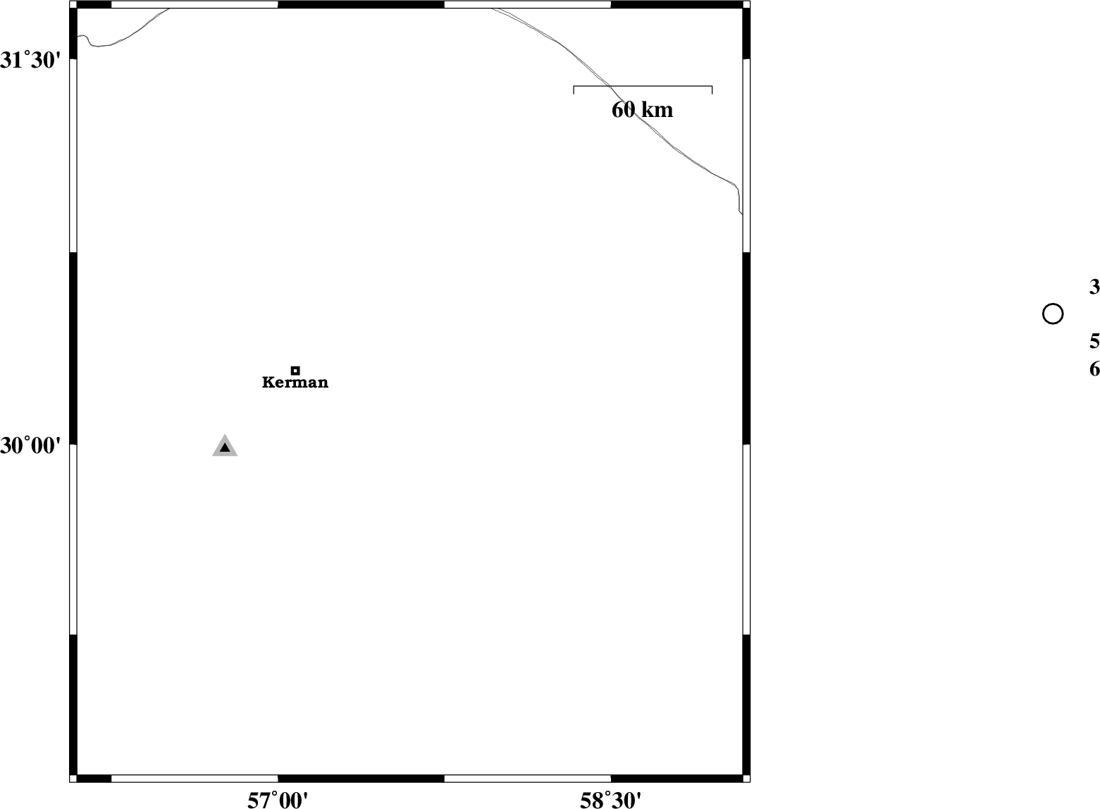 | 2025/04/15 | 10:28:06.7 | 13:58:06.7 | 30.195 | 57.594 | 12 | ML:2.9 | Kerman Province, 51 km -East of Kerman | ||
