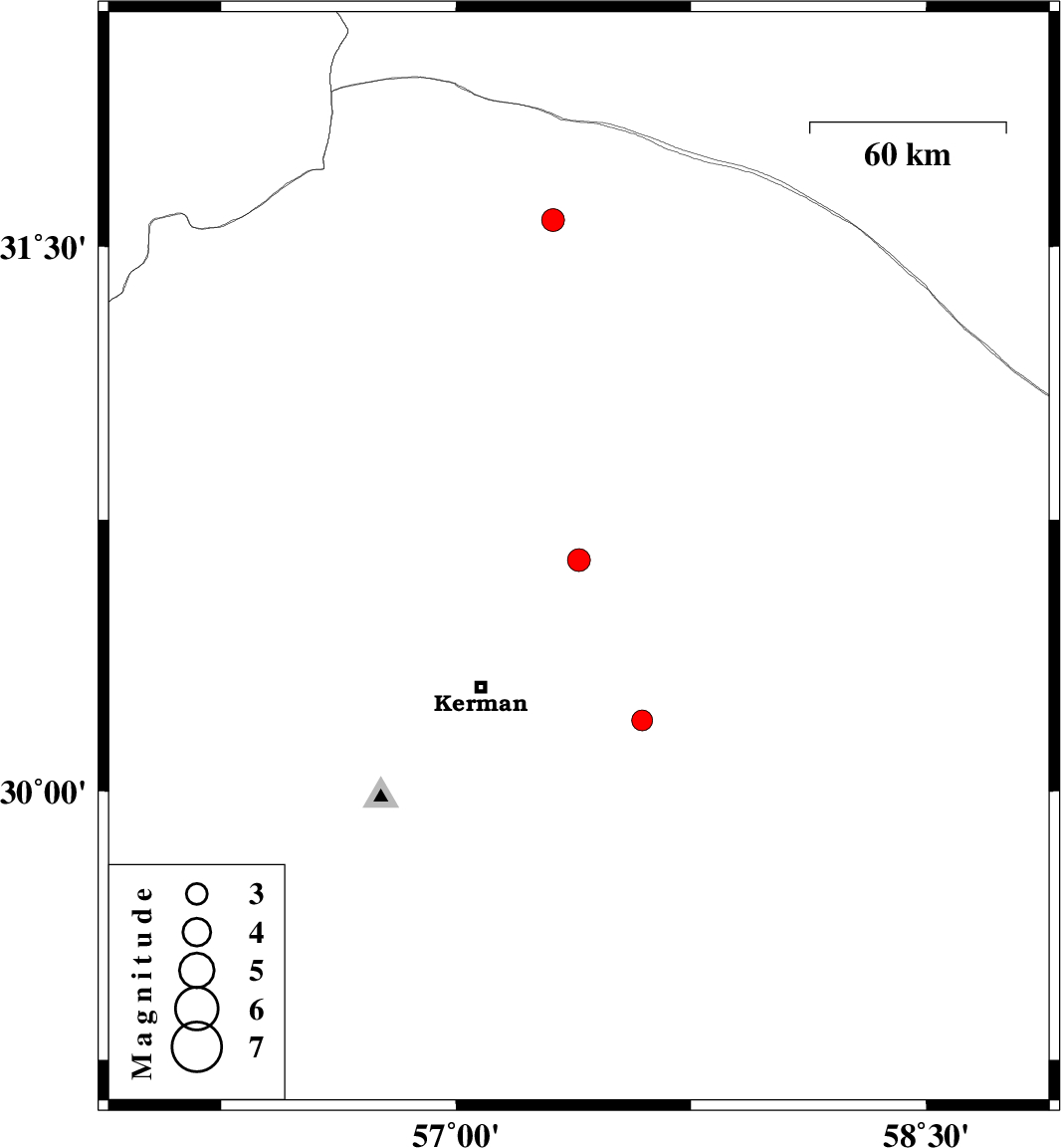 | 2025/04/17 | 20:00:41.4 | 23:30:41.4 | 30.639 | 57.392 | 16 | ML:3.3 | Kerman Province, 49 km North-East of Kerman | ||