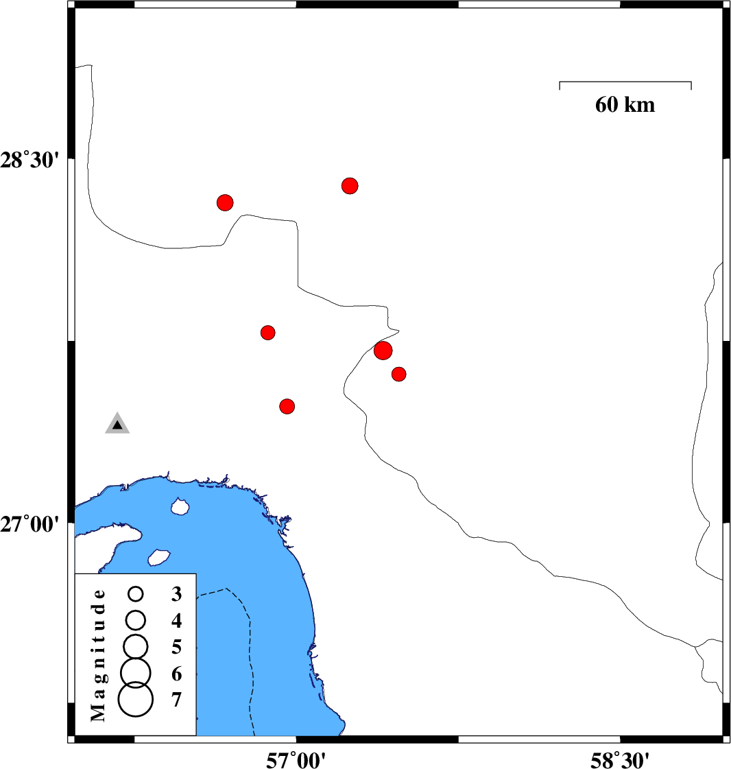 | 2025/04/18 | 07:26:05.0 | 10:56:05.0 | 27.711 | 57.401 | 12 | ML:3.8 | Kerman Province, 35 km North of Manujan | ||