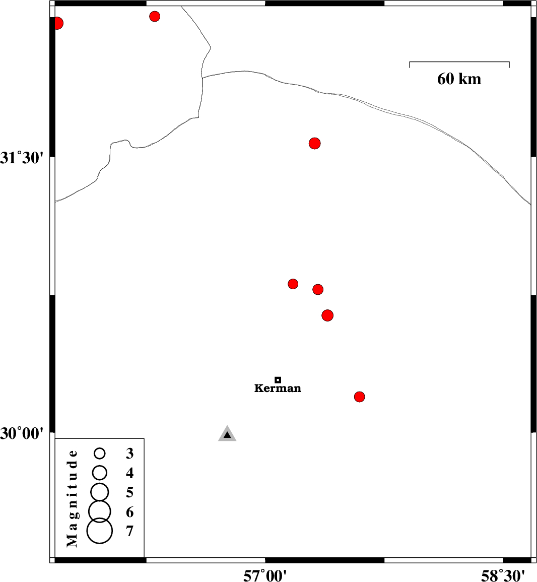 | 2025/04/17 | 20:00:41.4 | 23:30:41.4 | 30.639 | 57.392 | 16 | ML:3.3 | Kerman Province, 49 km North-East of Kerman | ||